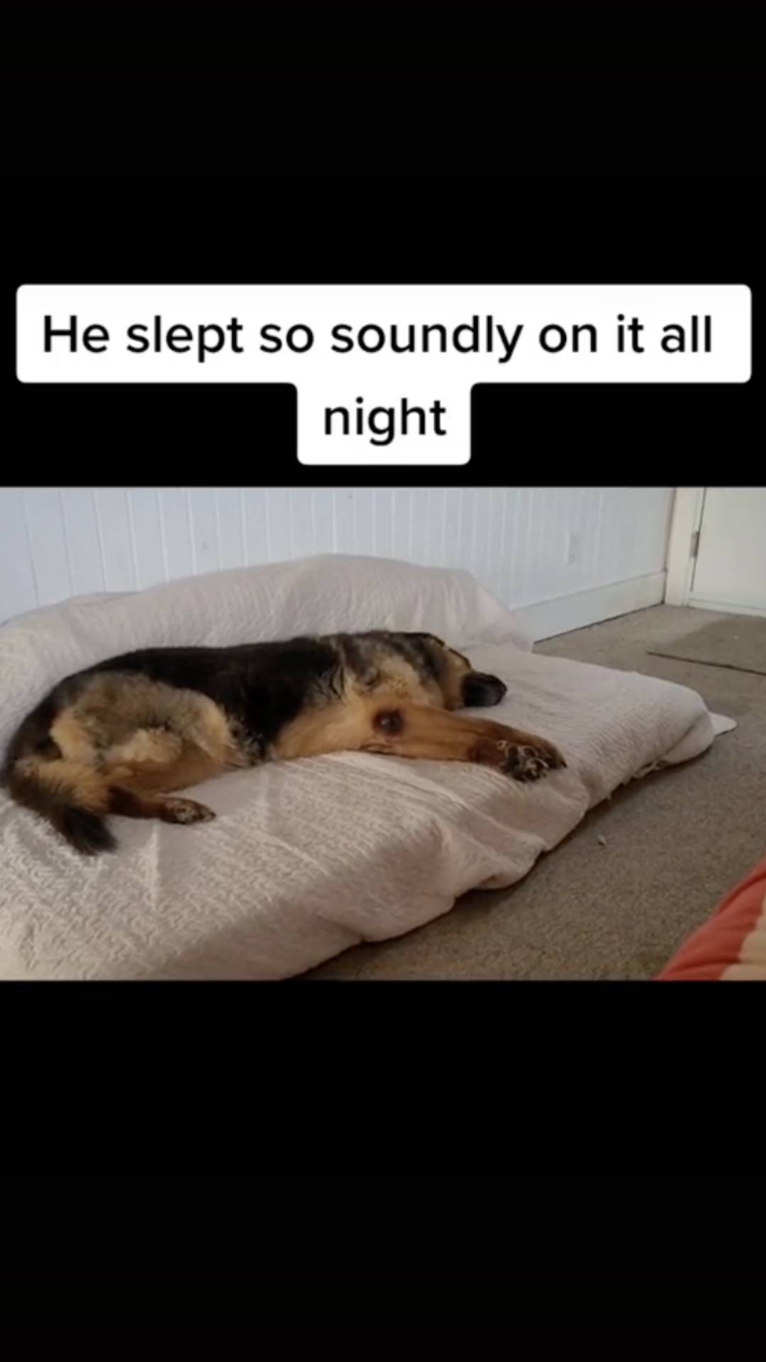 Stephanie, being compassionate, wanted to show Leroy that the bed was his own, so she enlarged it and offered him treats. She mentioned, “He slept very comfortably on it throughout the night.”
