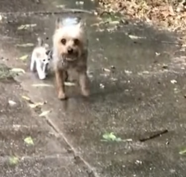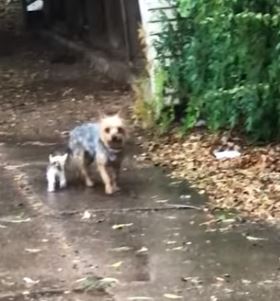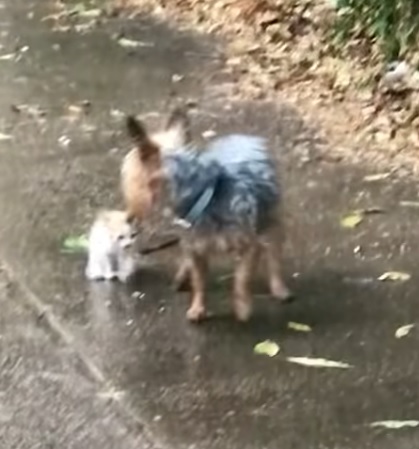Rewritten Source: https://animalchannel.co/yorkie-saves-kitten-rain/