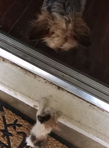 By pure instinct, Hazel understood that the kitten needed her help, and her only solution was to lead her new friend into her own home and to her owner Monica.